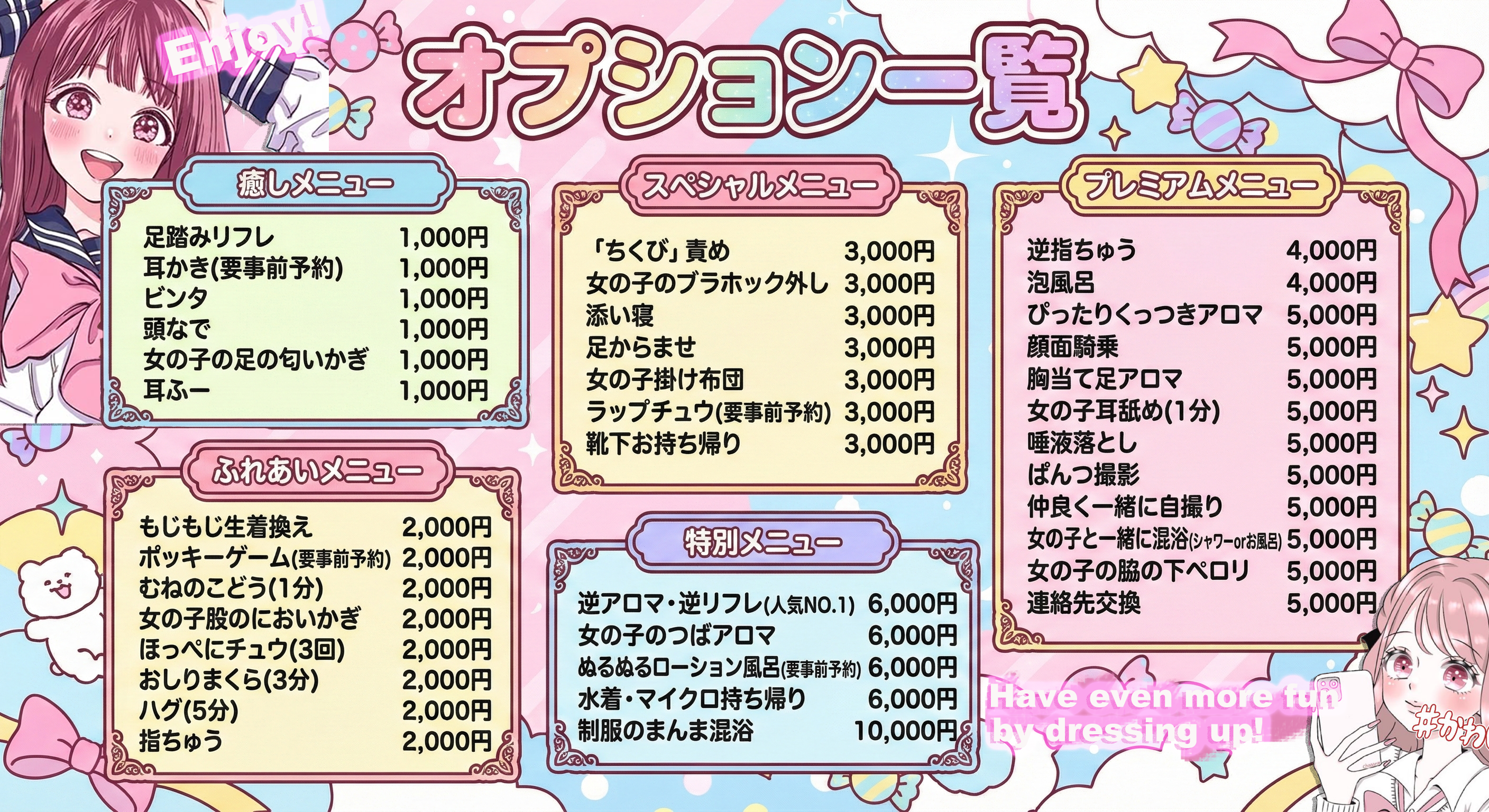 ・女の子の格好は、制服となります。(オプションでコスプレ利用時を除く)